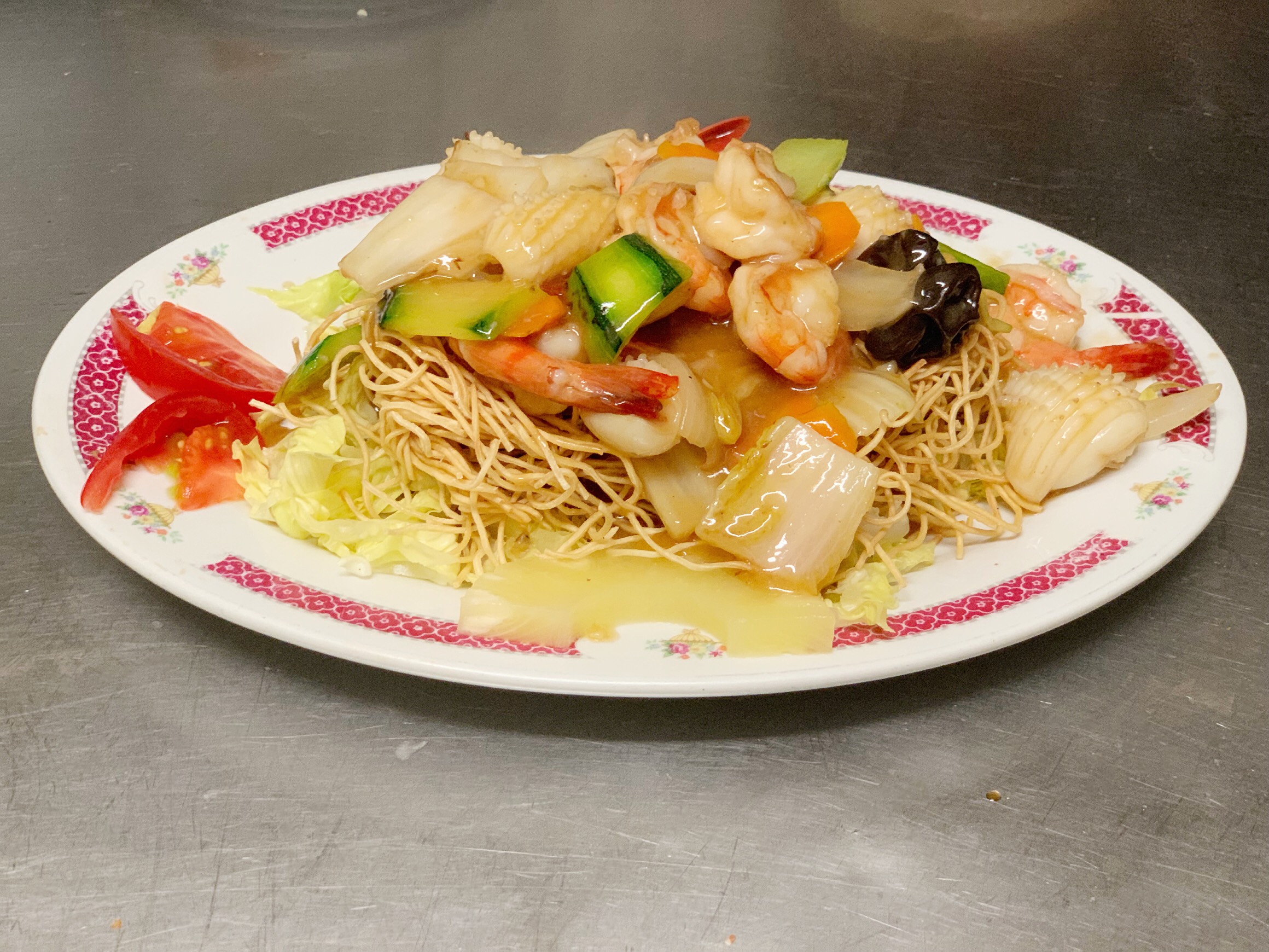 Nouilles de blé et morceaux de nems
